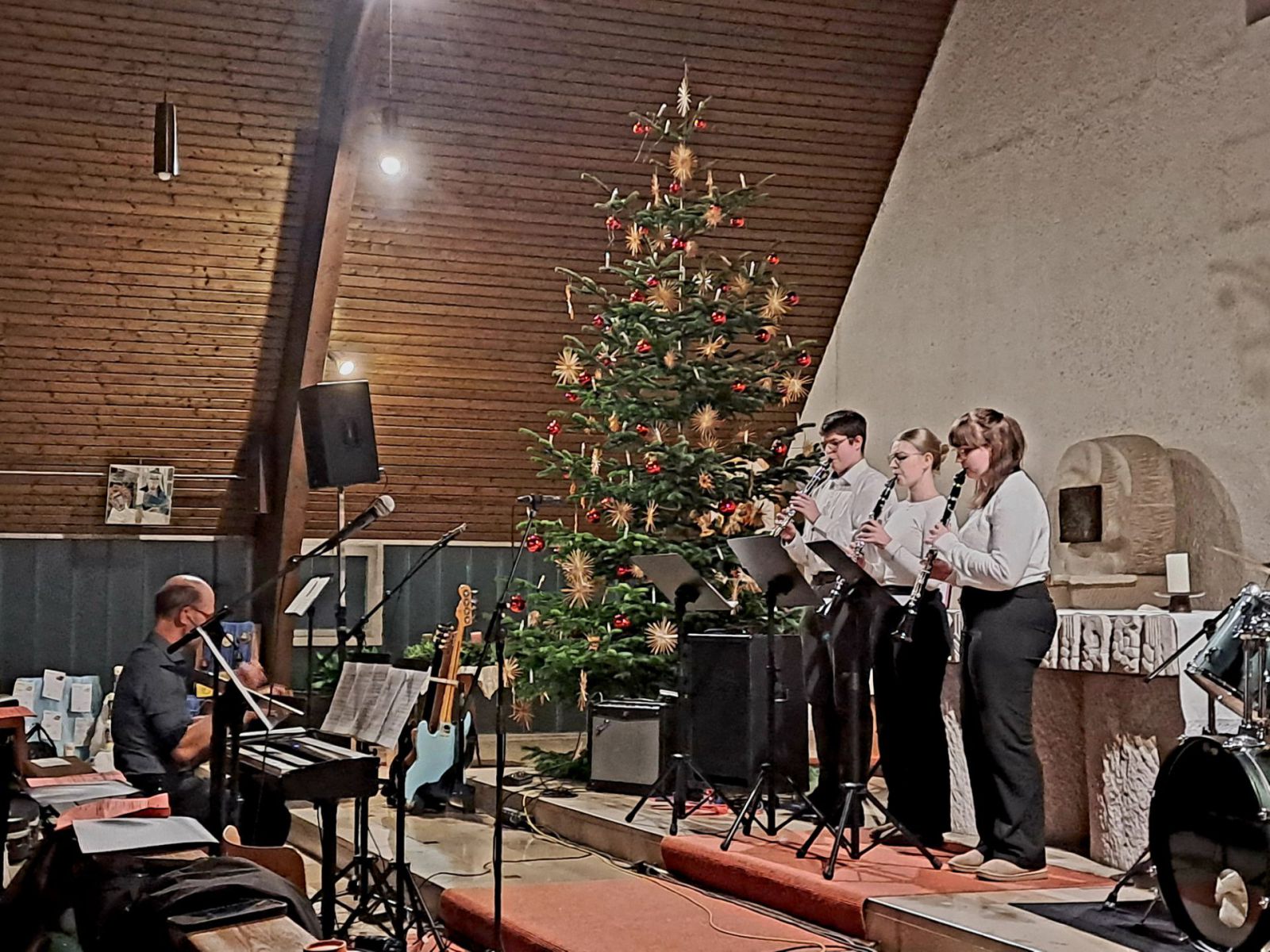 Vom Marsch über Rockiges bis zum Weihnachtsklassiker war alles dabei: Nach dem großen Erfolg am Vortag in der Pfarrkirche in Tschirn, verzauberten Schülerinnen und Schüler sowie einige Lehrkräfte mit Liedern, Instrumental-Stücken und viel Herz auch am Mittwochabend ihr begeistertes Publikum in Oberrodach. Gemeinsam mit der Fachschaft Musik, Florian Beetz und Mario Götz, hatten diese ein ebenso klangschönes wie vielseitiges Programm erarbeitet, das für manche Überraschung gut war.