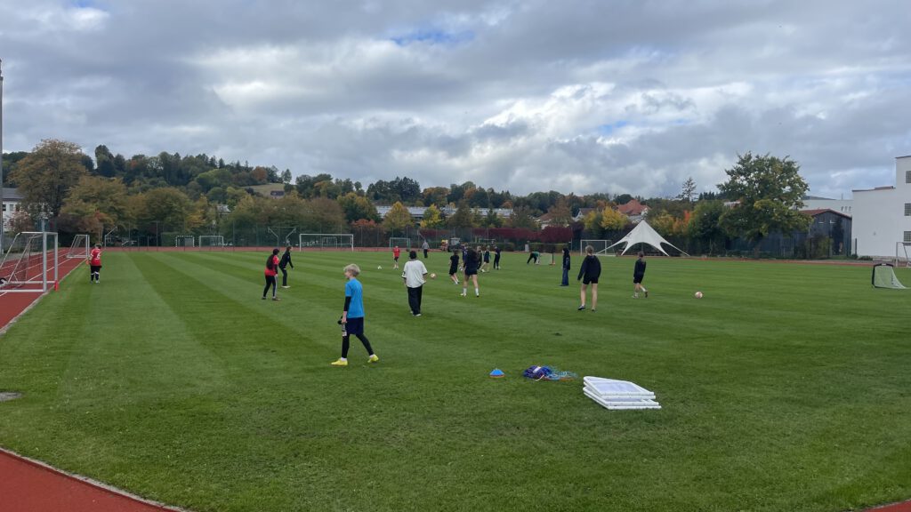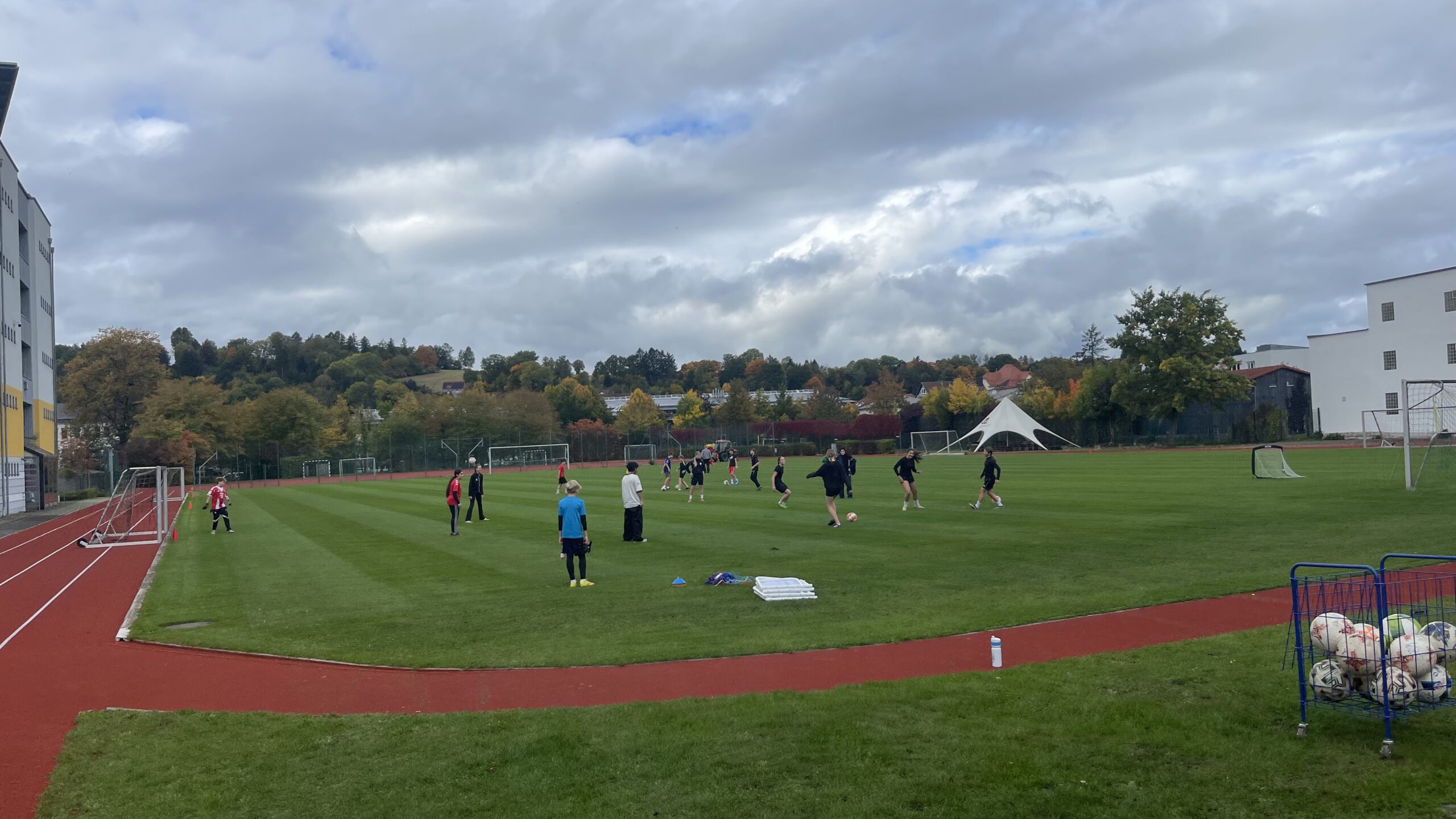 Das Ergebnis kann sich sehen lassen: Ein sattgrüner, gleichmäßiger Rasen, auf dem das Fußballspielen jetzt doppelt so viel Spaß macht. Die neue Laufbahn außen herum fügt sich in ihrem saftigen Rot wunderbar ein. Viele sagen, dass der KZG-Platz inzwischen zu den besten Rasenplätzen im ganzen Landkreis Kronach gehört. Ein großes Dankeschön an alle, die mitgeholfen haben, unseren Schulplatz so hervorragend herzurichten!