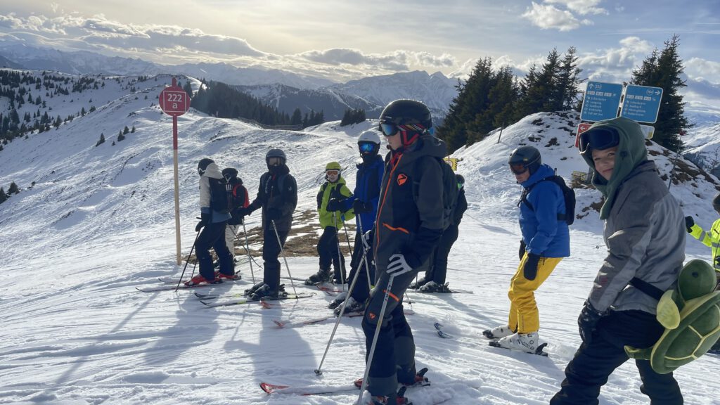 Sportlich ging es ebenfalls rasant voran: Zwei Drittel der Gruppe waren Anfänger, doch dank des Anfänger-Lifts direkt unterhalb des Grubhofs und der engagierten Lehrkräfte konnten alle schon am zweiten Tag die ersten blauen Pisten meistern. Am Ende wagten sich fast alle sogar auf den Zwölferkogel – ein echter Erfolg!